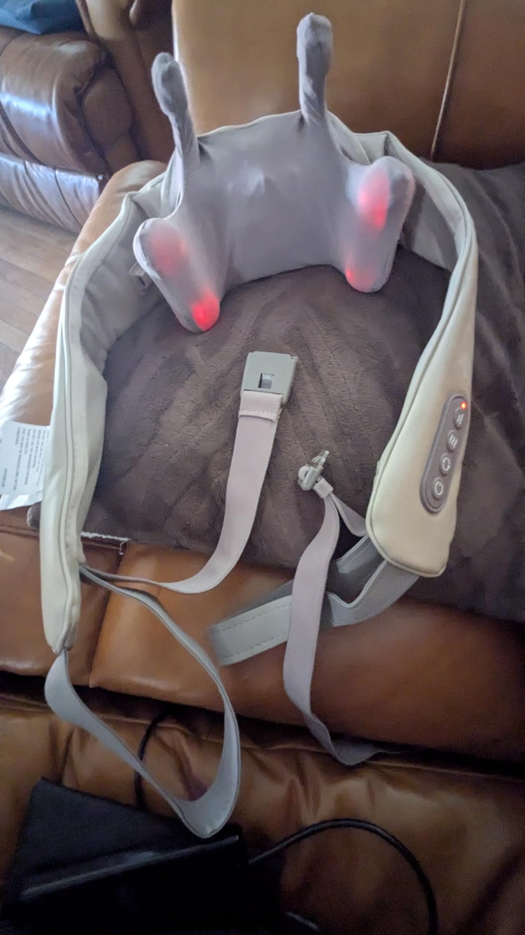 Ease neck and shoulder pain in minutes. Deep massage, heat therapy, and total comfort — no spa needed.